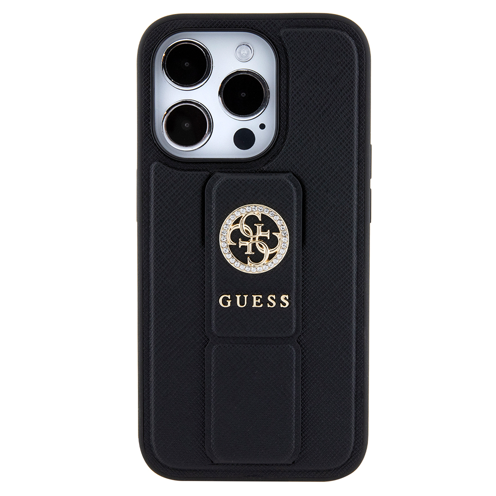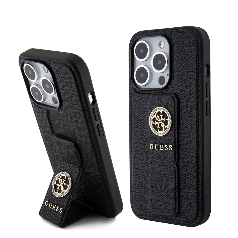 Guess Grip Stand 4G Saffiano Strass pro iPhone 15 Pro Max černáPředstavujeme exkluzivní pouzdro Guess Grip Stand 4G Saffiano Strass, které je ztělesněním elegance a praktičnosti pro váš iPhone 15 Pro Max. Tento kryt v luxusní černé barvě okamžitě upoutá pozornost svým sofistikovaným designem. Povrch je zdoben ikonickým 4G monogramem, který je charakteristický pro značku Guess, a to vše na elegantní Saffiano textuře, která připomíná jemnou kůži a je příjemná na dotek. Celkový vzhled podtrhují třpytivé kamínky (strass), které dodávají pouzdru nádech glamouru a exkluzivity.