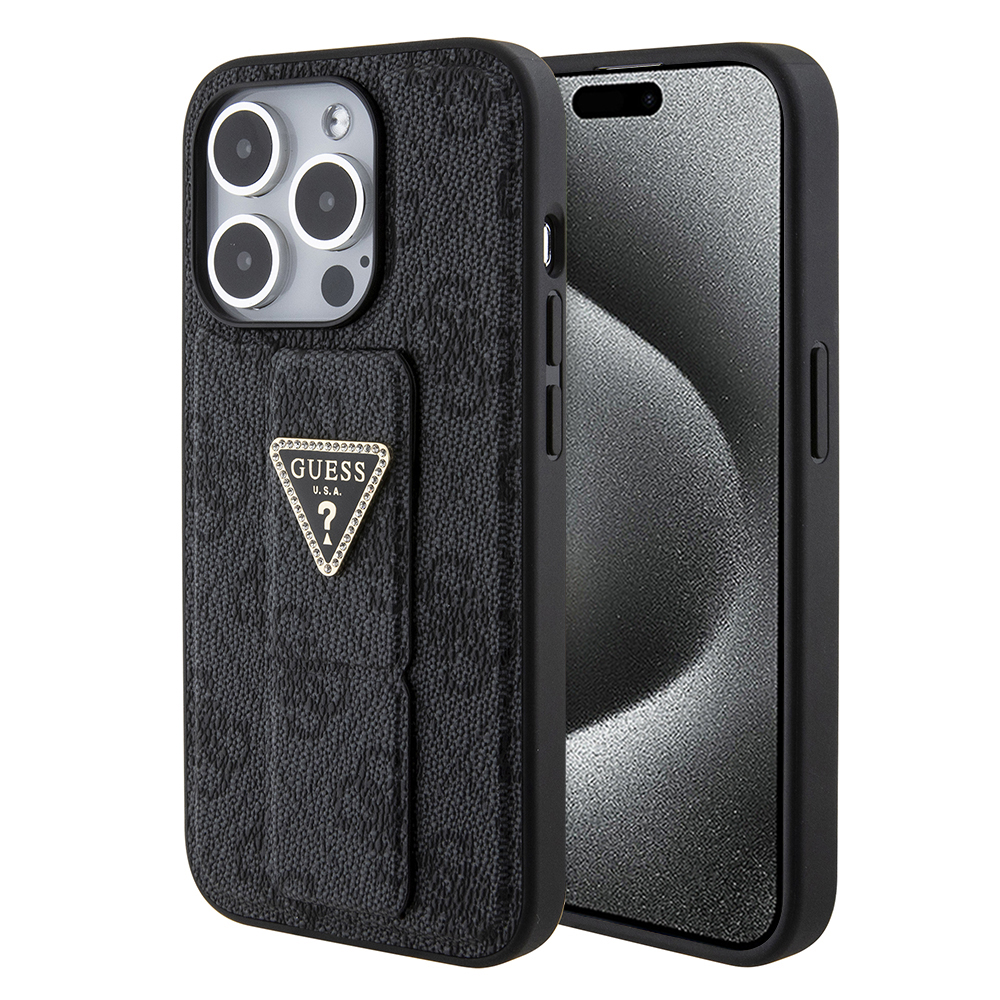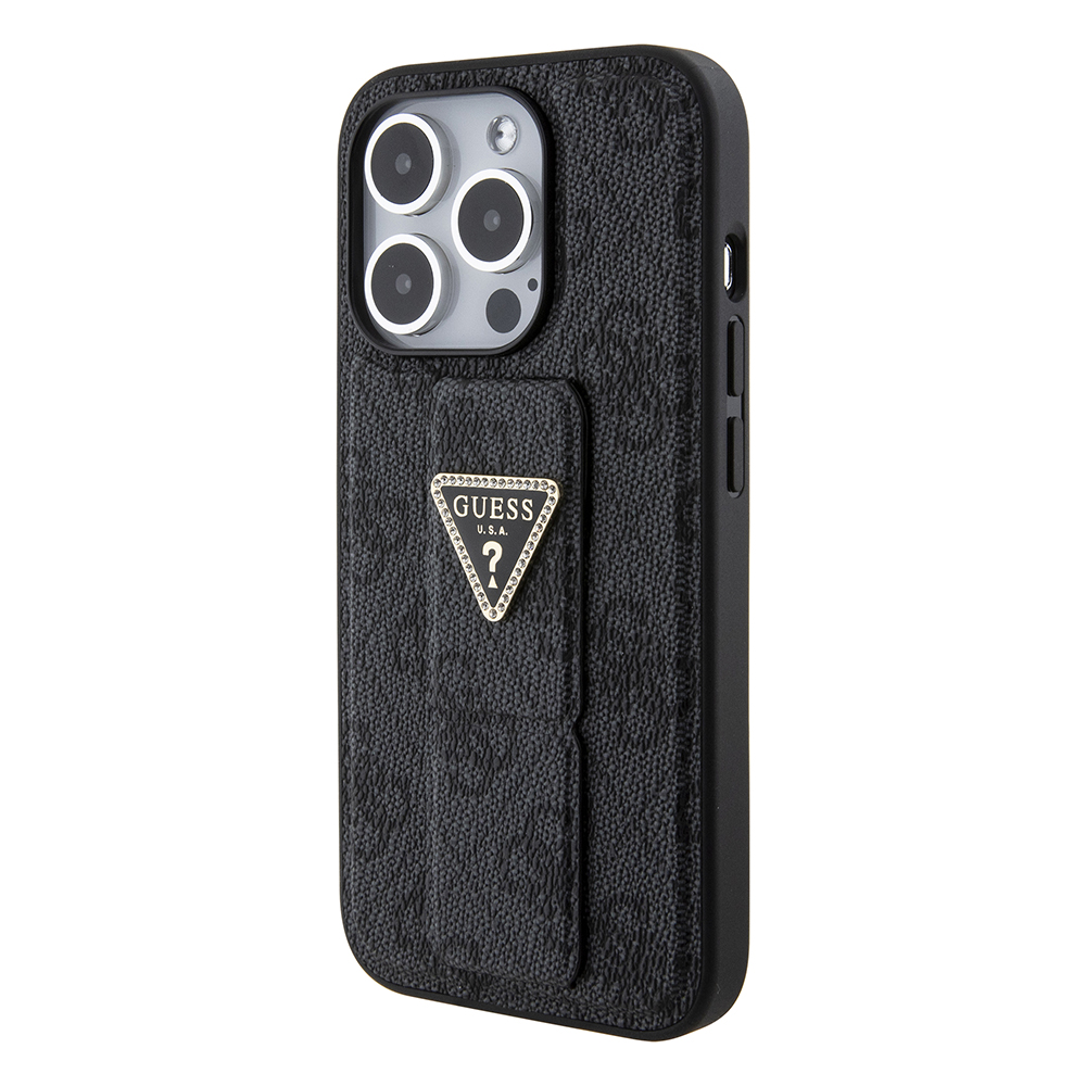 Guess Grip Stand 4G Triangle Strass pro iPhone 15 Pro Max černýPředstavujeme exkluzivní pouzdro Guess Grip Stand 4G Triangle Strass, které dokonale spojuje ikonický módní styl značky Guess s praktickou funkčností a spolehlivou ochranou pro váš iPhone 15 Pro Max. Tento elegantní doplněk je navržen tak, aby podtrhl vaši osobnost a dodal vašemu telefonu nádech luxusu.