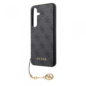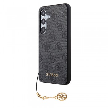 Tento hardcase se pyšní sofistikovaným designem s celoplošným monogramem 4G v elegantních odstínech černé a šedé, který dodává pouzdru luxusní a rozpoznatelný vzhled. Na spodní části zadní strany je decentně umístěno zlaté logo GUESS, které podtrhuje prémiový charakter produktu. Kryt je navíc doplněn o odnímatelný zlatý přívěsek s ikonickým logem Guess (otazník v trojúhelníku), který slouží jako stylový doplněk a zároveň praktický prvek pro snadnější manipulaci s telefonem. Přesné výřezy pro fotoaparát a porty zajišťují plnou funkčnost telefonu bez nutnosti vyjímání z pouzdra. Pouzdro je vyrobeno z odolného materiálu, který poskytuje spolehlivou ochranu proti poškrábání, nárazům a běžnému opotřebení, zatímco si zachovává tenký profil a lehkost.