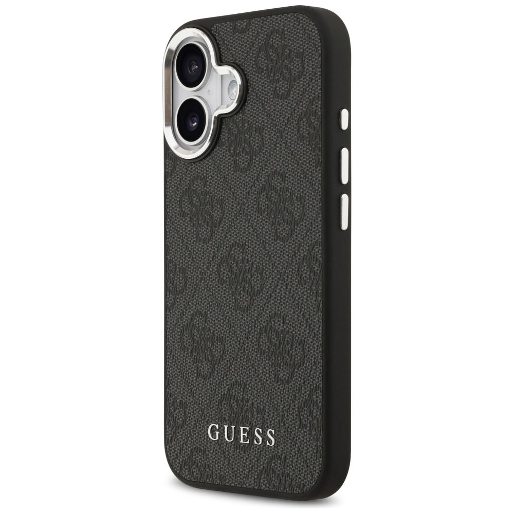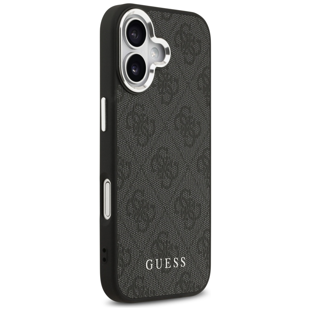 Kryt se pyšní sofistikovaným designem s celoplošným, decentně vyraženým 4G monogramem, který je pro značku Guess tak typický. Na spodní části krytu je umístěno stříbrné logo GUESS, které dodává celku punc luxusu. Okolo modulu fotoaparátu se nachází elegantní stříbrný rámeček, jenž nejen chrání čočky, ale také vizuálně doplňuje celkový vzhled. Díky integrované technologii MagSafe je zajištěna bezproblémová kompatibilita s MagSafe příslušenstvím, což umožňuje snadné a rychlé bezdrátové nabíjení a připojení dalších doplňků. Kryt je vyroben z odolného materiálu, který efektivně chrání telefon před poškrábáním, nárazy a nečistotami, zatímco přesné výřezy zajišťují plný přístup ke všem portům a tlačítkům.