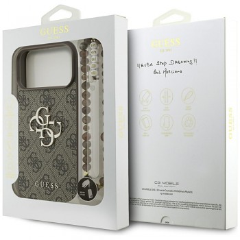 Guess Hardcase 4G Classic Logo s perlovým řemínkem iPhone 17 Pro Max hnědáPředstavujeme exkluzivní ochranné pouzdro Guess Hardcase 4G Classic Logo s perlovým řemínkem, které je navrženo pro váš iPhone 17 Pro Max. Tento stylový doplněk dokonale kombinuje ikonický design značky Guess s praktickou ochranou a jedinečným módním prvkem.