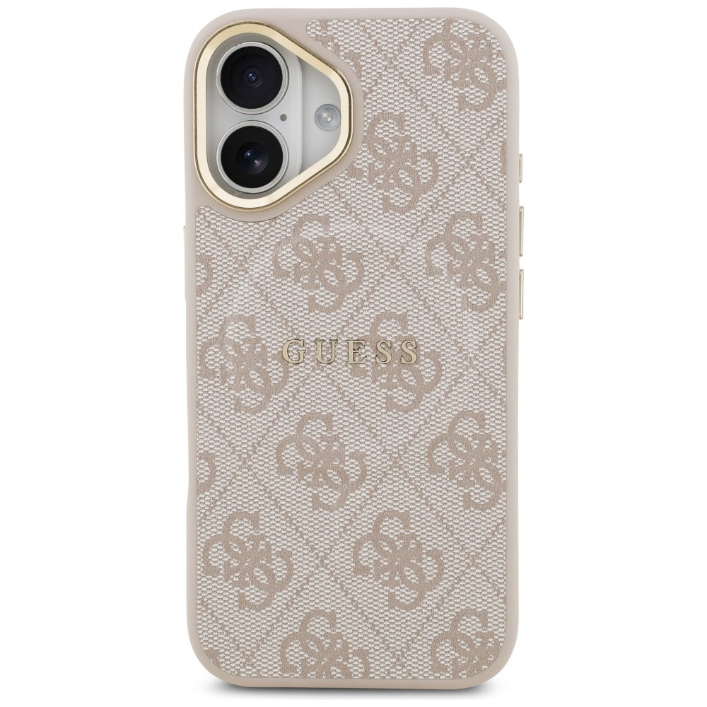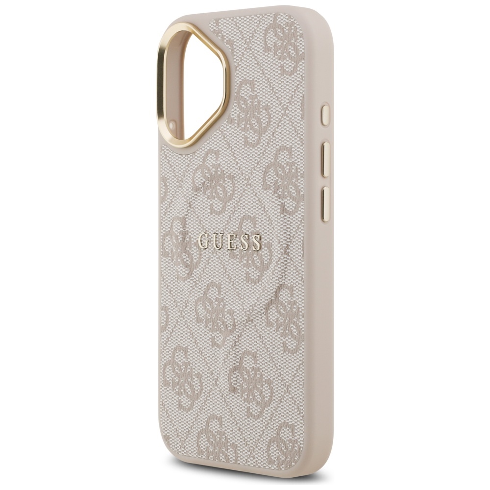 Tento Hardcase 4G Classic MagSafe kryt pro iPhone 17 se pyšní sofistikovaným designem, který okamžitě upoutá pozornost. Zadní strana je zdobena charakteristickým celoplošným monogramem 4G v jemném růžovém odstínu, který dodává pouzdru luxusní a rozpoznatelný vzhled. Uprostřed zadní strany je elegantně umístěno kovové logo GUESS ve zlaté barvě, které podtrhuje exkluzivitu produktu. Okolí modulu fotoaparátu je rovněž zvýrazněno zlatým rámečkem, což dodává celkovému vzhledu punc elegance a harmonie.