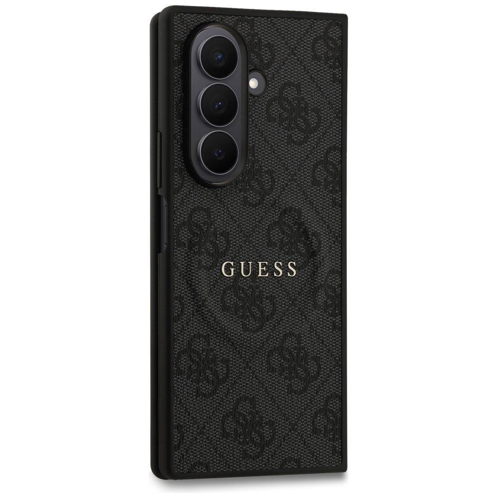 Design pouzdra je inspirován nadčasovou elegancí a charakteristickým rukopisem Guess. Dominantním prvkem je celoplošný monogram 4G, který je decentně, avšak rozpoznatelně vyražen po celém povrchu pouzdra. Tento vzor dodává krytu sofistikovaný a prémiový vzhled. Černá barva pouzdra je klasická a univerzální, snadno se kombinuje s jakýmkoli outfitem či doplňkem. Na zadní straně je elegantně umístěno kovové logo Guess, které je symbolem kvality a prestiže. Pouzdro je navrženo tak, aby dokonale kopírovalo linie vašeho Samsung Galaxy Z Fold7 a zároveň umožňovalo bezproblémové skládání a rozkládání telefonu.
