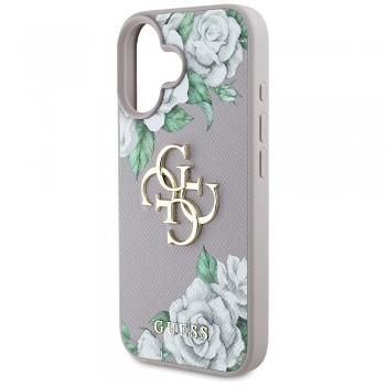 Pouzdro se pyšní sofistikovaným designem v něžném fialovém odstínu, který je doplněn jemnou texturou imitující elegantní Saffiano kůži. Hlavním prvkem je výrazné, trojrozměrné zlaté logo Guess 4G, které dominuje středu pouzdra a okamžitě upoutá pozornost. Celkový vzhled je zjemněn nádherným motivem bílých růží s decentními zelenými lístky, které se rozprostírají v rozích pouzdra a dodávají mu romantický a svěží nádech. Precizní výřezy pro fotoaparát, tlačítka a konektory zajišťují plnou funkčnost a pohodlné používání.