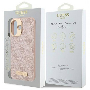 Guess hardcase 4G Logo Plate MagSafe iPhone 16 růžovýPřeneste ikonický styl značky Guess přímo do vaší ruky s exkluzivním Guess Hardcase 4G Logo Plate MagSafe pro iPhone 16. Tento kryt není jen ochranou, je to módní prohlášení, které dokonale podtrhne vaši osobnost a eleganci.