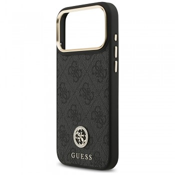 Pouzdro Guess Hardcase 4G Strass Logo MagSafe v elegantní černé barvě se pyšní ikonickým 4G monogramem, který je decentně vyražen po celé zadní straně krytu, což mu dodává sofistikovaný a rozpoznatelný vzhled. Dominantním prvkem je pak kulaté kovové logo Guess s propletenými iniciály, které je precizně osázeno třpytivými kamínky, dodávajícími pouzdru exkluzivní a oslnivý lesk. Okolo modulu fotoaparátu se nachází elegantní zlatý rámeček, který nejen chrání čočky, ale zároveň vytváří luxusní kontrast s černým povrchem. Tlačítka jsou rovněž ve zlaté barvě, což podtrhuje celkový prémiový dojem a zajišťuje snadné ovládání.