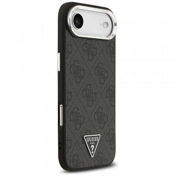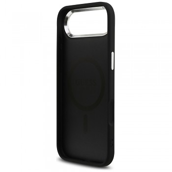 Pouzdro se pyšní sofistikovaným designem v černé barvě, který je charakteristický pro značku Guess. Zadní strana je zdobena celoplošným, decentním 4G monogramem, který dodává pouzdru prémiový vzhled a okamžitě rozpoznatelný styl. Dominantním prvkem je elegantní stříbrné kovové logo Guess v trojúhelníkovém provedení, umístěné ve spodní části, které podtrhuje exkluzivitu produktu. Oblast kolem fotoaparátu je vkusně zvýrazněna stříbrným metalickým rámečkem, což dodává pouzdru moderní a uhlazený vzhled. Boční tlačítka jsou rovněž ve stříbrné barvě, což harmonicky doplňuje celkový design. Jedná se o hardcase provedení, které zajišťuje pevnou a spolehlivou ochranu proti poškrábání a menším nárazům. Integrovaná technologie MagSafe pak zaručuje bezproblémové a rychlé připojení MagSafe příslušenství a bezdrátové nabíjení.