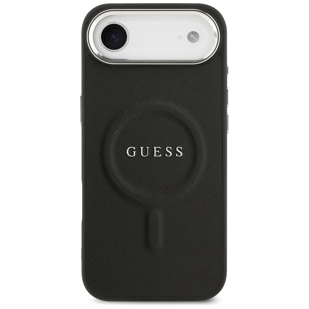 Pouzdro Guess Hardcase Classic Logo MagSafe se pyšní sofistikovaným designem, který kombinuje klasickou eleganci s moderními prvky. Zadní strana krytu je vyvedena v černé barvě s jemnou, decentní texturou, která připomíná luxusní kůži a zajišťuje příjemný pocit v ruce i pevný úchop. Dominantou je pak výrazné, ale vkusné logo GUESS umístěné uprostřed zadní strany, které okamžitě signalizuje příslušnost k prestižní módní značce.