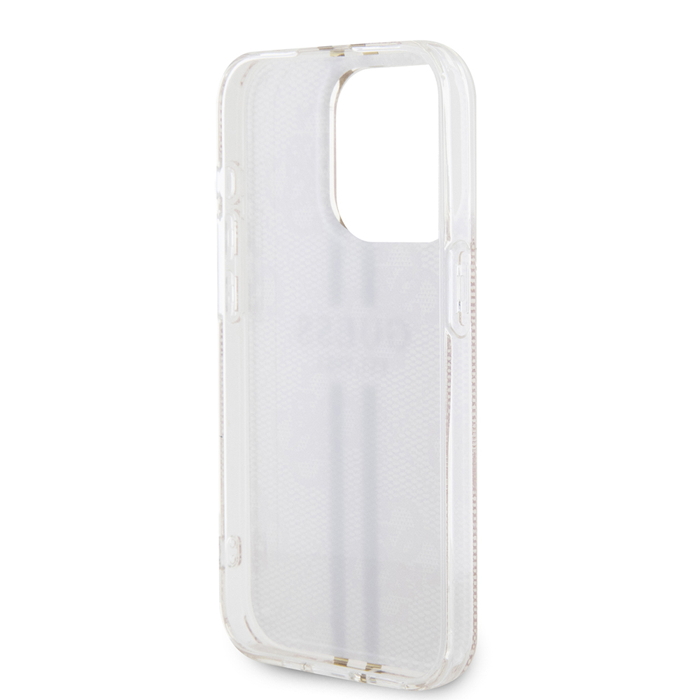Povrch pouzdra zdobí ikonický 4G monogram, který je diskrétně, avšak rozpoznatelně rozprostřen po celé ploše. Dominantním prvkem designu je elegantní zlatý pruh, který prochází pouzdrem a dodává mu punc luxusu a exkluzivity. Tento pruh je často doplněn decentním logem Guess, které podtrhuje prémiový charakter produktu. Jedná se o pevné pouzdro (hardcase), které poskytuje spolehlivou ochranu zadní strany a boků telefonu před běžnými nárazy a poškrábáním, aniž by přidávalo zbytečný objem.