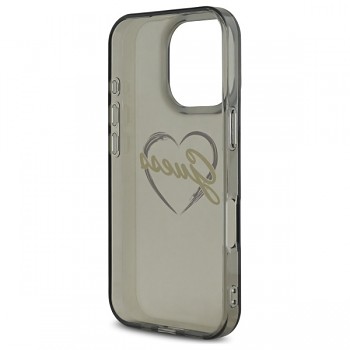 Kryt Guess Hardcase IML Heart se pyšní transparentním, kouřově černým provedením, které nechává vyniknout originální design vašeho iPhone 16 Pro Max. Dominantním prvkem je elegantní logo Guess ve zlatavé barvě, které je umístěno na zadní straně a obklopeno jemným, štětcem malovaným obrysem srdce v decentním fialovém odstínu. Tento detail dodává krytu romantický, avšak stále sofistikovaný vzhled. Kryt je vyroben z odolného materiálu, který chrání telefon před poškrábáním, drobnými nárazy a nečistotami, zatímco přesné výřezy zajišťují snadný přístup ke všem portům a tlačítkům. Zvýšené okraje kolem fotoaparátu a displeje poskytují extra ochranu proti poškrábání při položení na rovný povrch.