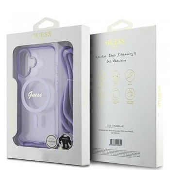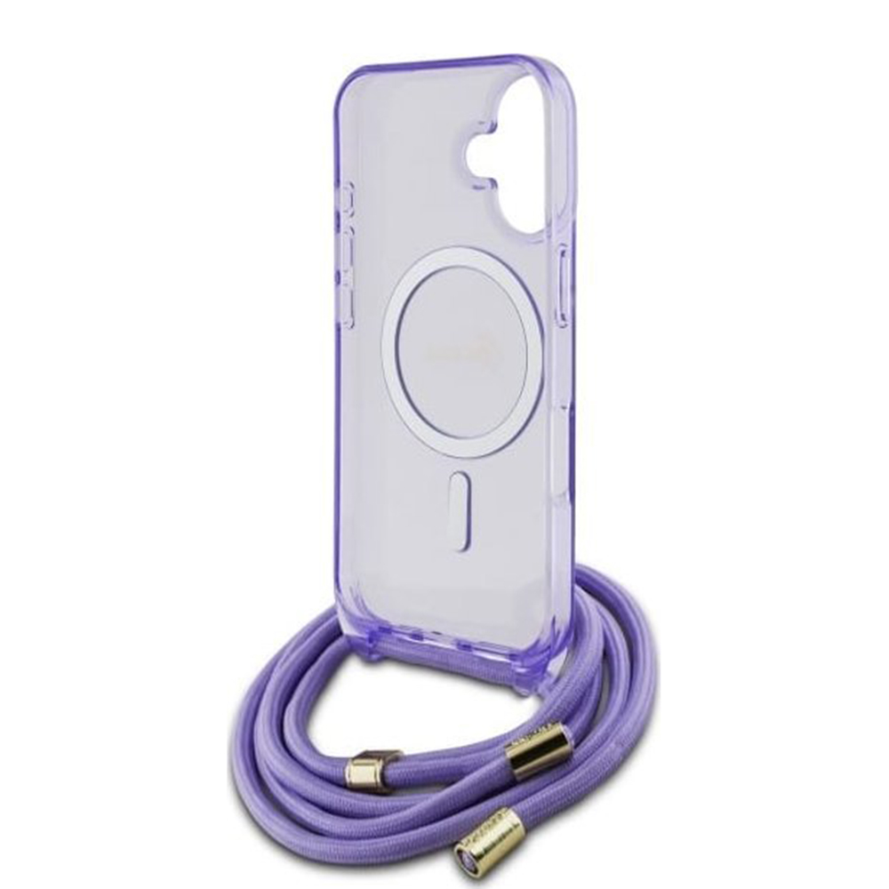 Design pouzdra je ztělesněním moderní elegance. Je vyrobeno z průsvitného materiálu, který nechá vyniknout originální barvu vašeho telefonu, zatímco mu dodá jemný růžový nádech. Dominantou zadní strany je výrazné, ale přesto decentní logo Guess, které je elegantně integrováno do kruhového prvku pro technologii MagSafe. Díky tomu si užijete bezproblémové a rychlé bezdrátové nabíjení a kompatibilitu s MagSafe příslušenstvím. Součástí balení je i stylová crossbody šňůrka v ladící růžové barvě, která je opatřena zlatými kovovými detaily. Ta vám umožní nosit telefon pohodlně přes rameno nebo kolem krku, a mít tak ruce volné a telefon vždy po ruce. Už žádné hledání telefonu v kabelce!