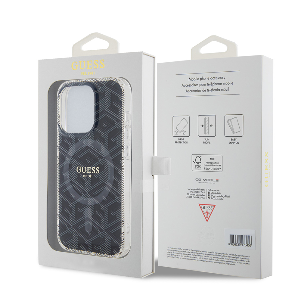 Pouzdro Guess IML GCube MagSafe se pyšní sofistikovaným designem, který okamžitě upoutá pozornost. Zadní strana je zdobena elegantním geometrickým vzorem "GCube" v tmavých odstínech, který dodává pouzdru moderní a dynamický vzhled. Uprostřed dominuje výrazné logo Guess s nápisem "EST. 1981", které podtrhuje exkluzivitu značky. Integrovaný MagSafe kroužek je diskrétně začleněn do designu, což zajišťuje plnou kompatibilitu s MagSafe příslušenstvím a bezdrátovým nabíjením, aniž by narušoval estetiku pouzdra. Průhledné boky pouzdra nechávají vyniknout původní barvu vašeho telefonu, zatímco přesné výřezy zaručují snadný přístup ke všem portům a tlačítkům. Pouzdro je navrženo s tenkým profilem a nabízí ochranu proti pádům, což z něj činí ideální kombinaci stylu a praktičnosti.