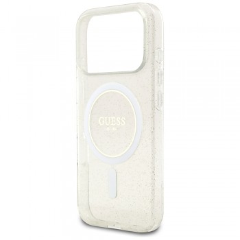 Pouzdro se pyšní průhledným provedením s jemnými, třpytivými částečkami, které dodávají vašemu telefonu oslnivý lesk a zároveň nechávají vyniknout jeho originální barvu. Integrovaná technologie MagSafe zajišťuje bezproblémové a pevné uchycení k MagSafe příslušenství a rychlé bezdrátové nabíjení. Na zadní straně pouzdra je elegantně umístěno logo Guess s nápisem "EST. 1981" v kruhovém designu, který podtrhuje prémiový charakter produktu.