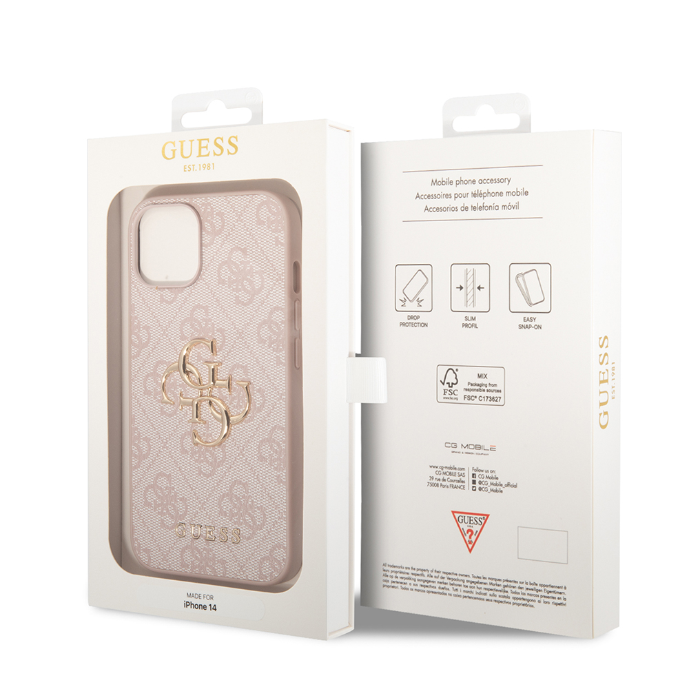Guess Leather 4G Metal Logo GUHCP14S4GMGPI iPhone 14 růžováPředstavujeme vám exkluzivní ochranné pouzdro Guess Leather 4G Metal Logo, které dokonale snoubí ikonický módní styl značky Guess s praktickou ochranou pro váš iPhone 14. Tento model s označením GUHCP14S4GMGPI v elegantní růžové barvě je ztělesněním luxusu a sebevědomého vkusu.