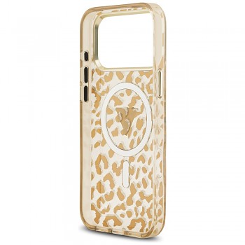 Představujeme vám pouzdro Guess Leopard Glitter MagSafe, které je ztělesněním elegance a funkčnosti. Tento hnědý kryt se pyšní průhledným provedením s výrazným leopardím vzorem v hnědo-zlatých tónech, který dodává vašemu telefonu divoký a zároveň sofistikovaný vzhled. V centru zadní strany je elegantně umístěno kovové logo Guess v trojúhelníku s otazníkem, které je obklopeno integrovaným MagSafe kroužkem. Ten zajišťuje perfektní kompatibilitu s MagSafe příslušenstvím a bezdrátovým nabíjením, což zaručuje maximální pohodlí a funkčnost.