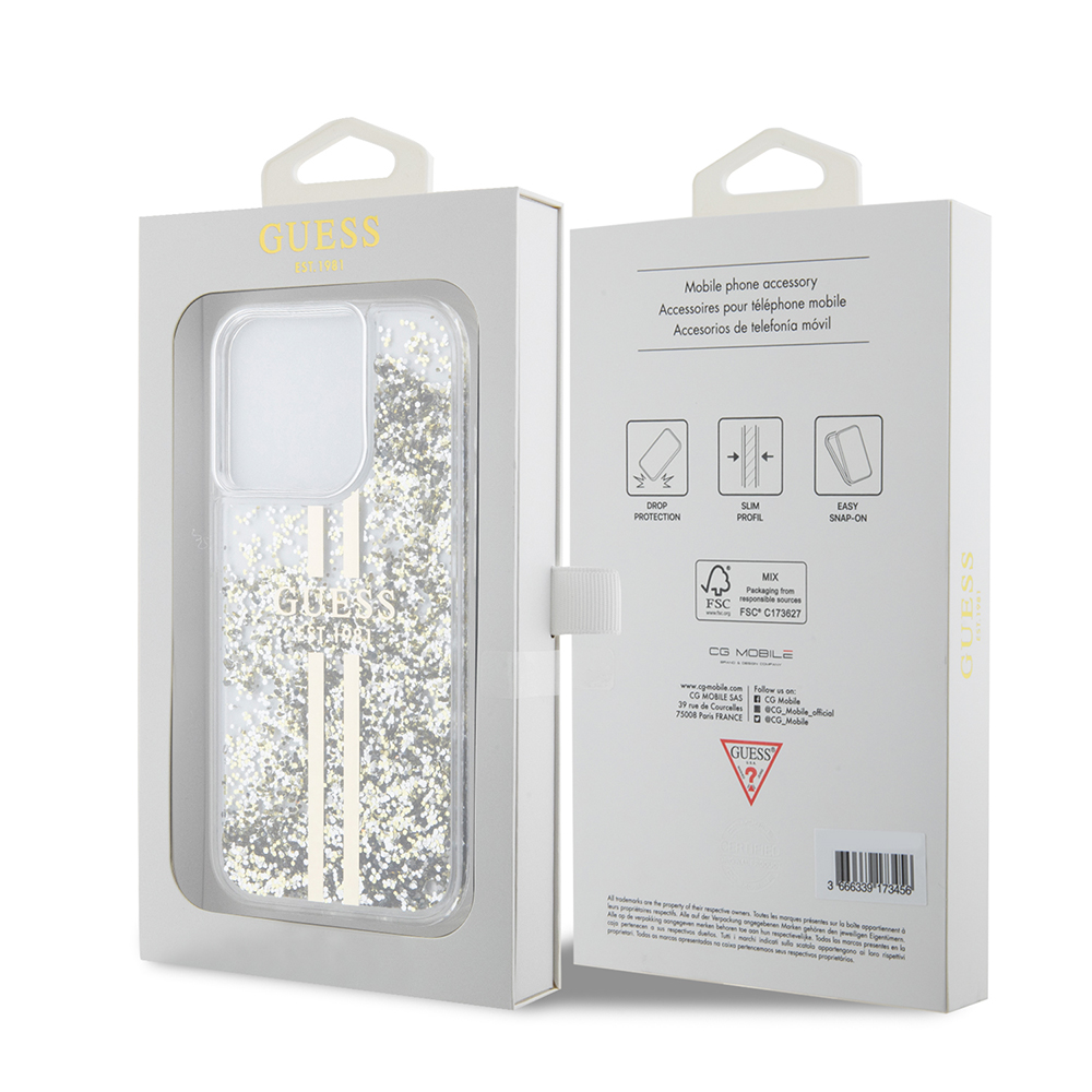 Guess Liquid Glitter Gold Stripes pouzdro iPhone 15 Pro průhlednéPřeneste ikonický styl značky Guess přímo do své dlaně s exkluzivním pouzdrem Guess Liquid Glitter Gold Stripes. Toto průhledné pouzdro je navrženo tak, aby dokonale podtrhlo eleganci vašeho iPhone 15 Pro a zároveň mu dodalo nádech luxusu a hravosti.