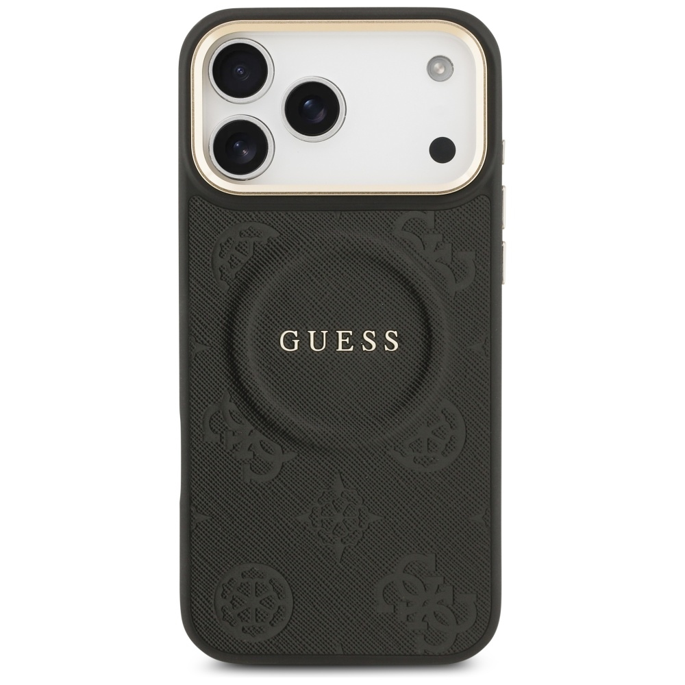 Pouzdro Guess Peony Hot Stamp MagSafe pro iPhone 17 Pro Max v elegantní černé barvě představuje dokonalou kombinaci módy a funkčnosti. Jeho design je inspirován ikonickým stylem značky Guess, který se projevuje v každém detailu. Zadní strana pouzdra je zdobena jemným, ale výrazným reliéfním vzorem pivoňky (Peony Hot Stamp), který dodává pouzdru luxusní a sofistikovaný vzhled. Uprostřed zadní strany je elegantně umístěno zlaté logo Guess, které je integrováno do kruhového prvku pro technologii MagSafe.