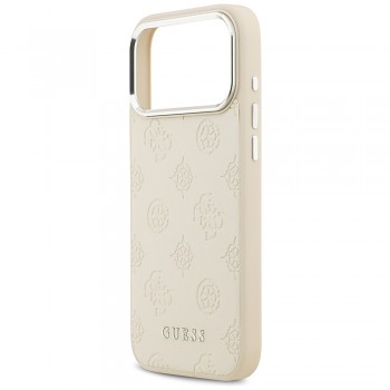 Pouzdro Guess Peony Hot Stamp Script MagSafe pro iPhone 17 Pro Max v elegantní béžové barvě představuje dokonalou kombinaci sofistikovanosti a moderního stylu. Jeho design je charakteristický jemným, ale výrazným embosovaným vzorem Peony, který pokrývá celou zadní stranu pouzdra. Tento květinový motiv, tvořený stylizovanými písmeny "G" a květinovými prvky, dodává pouzdru luxusní a rozpoznatelný vzhled. Spodní část zdobí decentní nápis GUESS, který podtrhuje exkluzivitu značky. Oblast kolem fotoaparátu je elegantně zvýrazněna stříbrným/kovovým rámečkem, který nejen chrání čočky, ale zároveň dodává pouzdru punc prémiového doplňku. Hladké boky pouzdra zajišťují pohodlné držení a snadný přístup ke všem tlačítkům a portům.