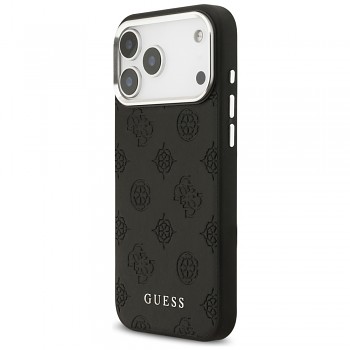 Pouzdro se pyšní sofistikovaným designem, který kombinuje klasickou černou barvu s jemným, ale výrazným embosovaným vzorem. Celý povrch zadní strany je pokryt opakujícím se motivem Guess Peony, což je stylizovaný květinový ornament, který dodává pouzdru luxusní a rozpoznatelný vzhled. Ve spodní části je decentně umístěno logo GUESS, které potvrzuje originalitu a prestiž značky. Oblast kolem fotoaparátu je elegantně zvýrazněna stříbrným rámečkem, který dodává pouzdru moderní a prémiový nádech. Pouzdro je vyrobeno z kvalitního materiálu, který zajišťuje příjemný dotyk a zároveň spolehlivou ochranu proti poškrábání a drobným nárazům. Díky integrované technologii MagSafe je zajištěna bezproblémová kompatibilita s bezdrátovým nabíjením a MagSafe příslušenstvím, což zvyšuje uživatelský komfort.