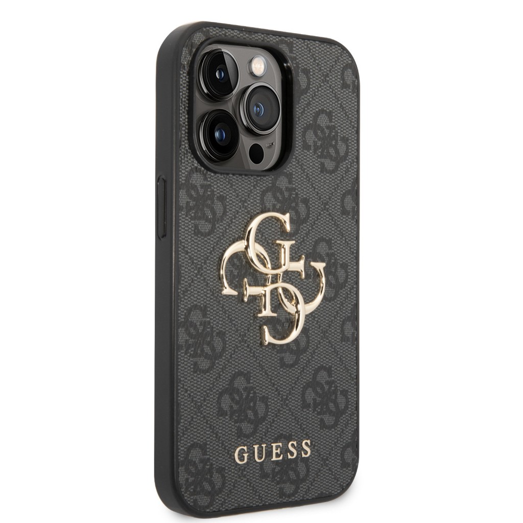 Guess PU 4G Metal Logo Zadní Kryt pro iPhone 15 Pro Grey