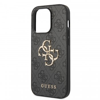 Guess PU 4G Metal Logo Zadní Kryt pro iPhone 15 Pro Max Grey