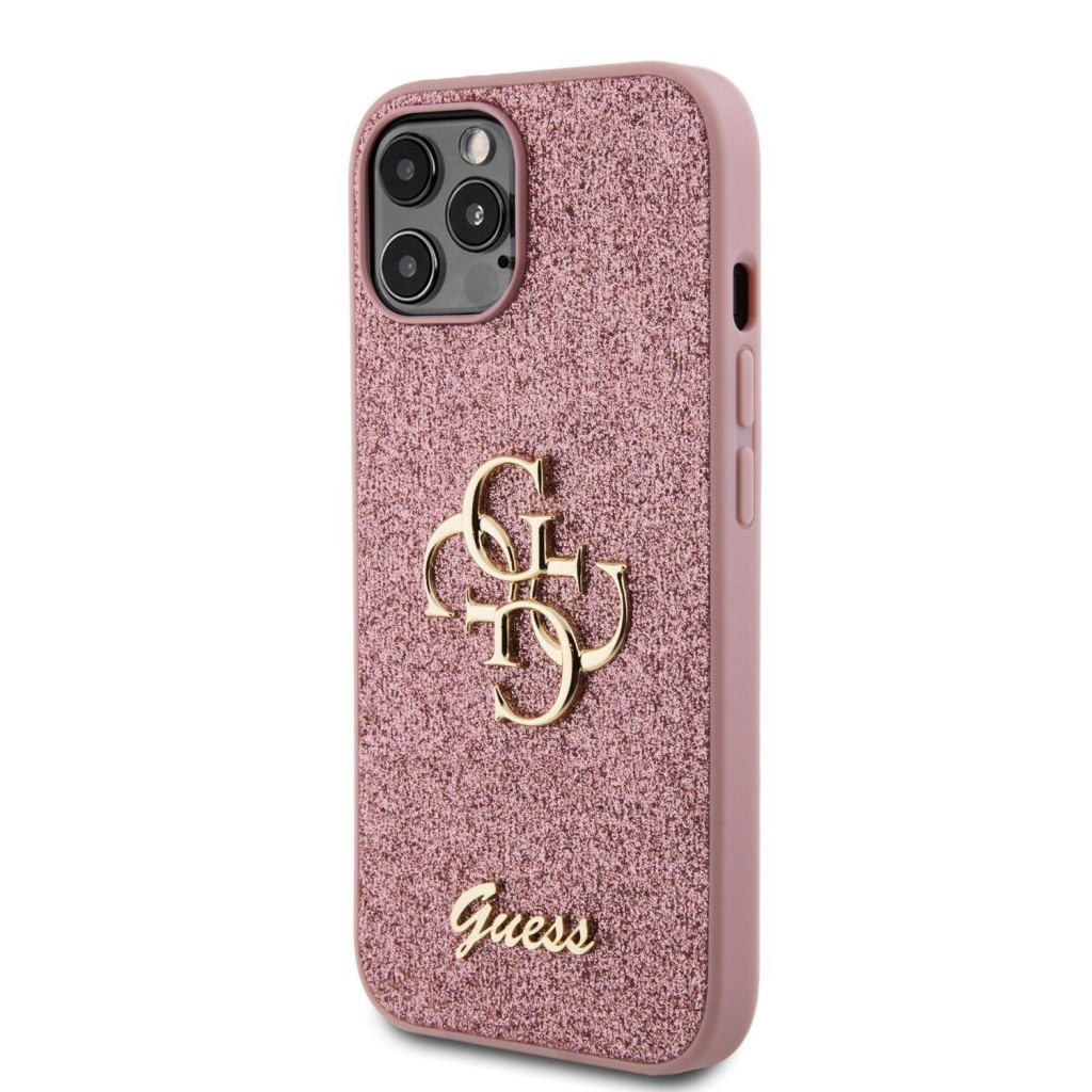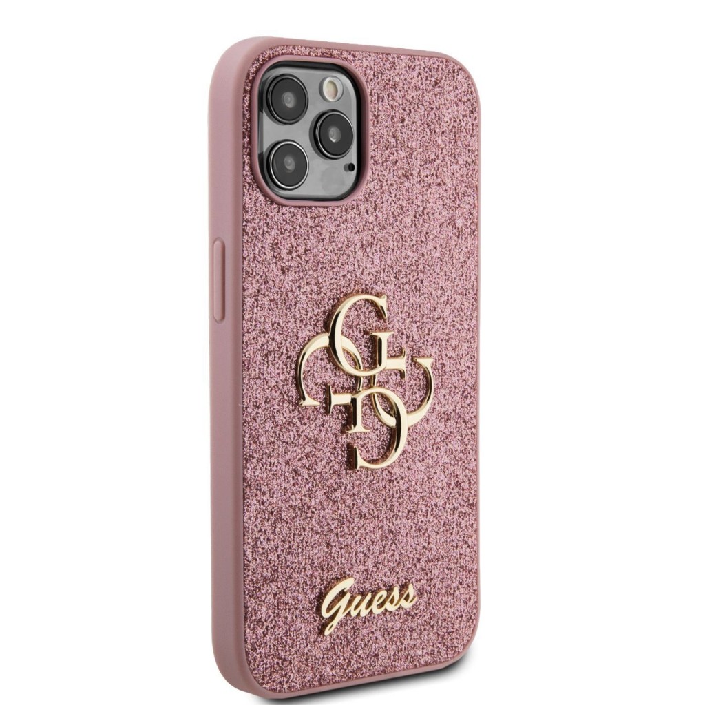 Guess PU Fixed Glitter 4G Metal Logo Zadní Kryt pro iPhone 12 - 12 Pro Pink