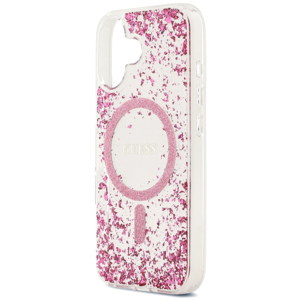 Pouzdro se pyšní průhledným designem, který nechává vyniknout originální krásu vašeho iPhone 17. Zadní strana je bohatě poseta růžovými třpytkami, které vytvářejí fascinující efekt a dodávají pouzdru luxusní a hravý charakter. Integrovaný MagSafe kroužek v ladící růžové barvě s třpytkami nejen zajišťuje perfektní kompatibilitu s MagSafe příslušenstvím, ale zároveň slouží jako výrazný designový prvek. Uvnitř MagSafe kroužku je decentně umístěno ikonické logo Guess, které podtrhuje prémiový původ pouzdra. Okraje pouzdra jsou transparentní a dokonale kopírují linie telefonu, čímž zajišťují pohodlné držení a snadný přístup ke všem tlačítkům a portům.