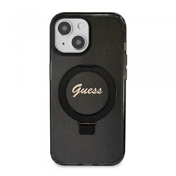 Pouzdro Guess Ring Stand Script Glitter MagSafe pro iPhone 15 se pyšní elegantním a moderním designem. Je vyrobeno z odolného materiálu v černé barvě, který je protkán jemnými třpytkami, dodávajícími pouzdru luxusní a jiskřivý vzhled. Tento design zajišťuje, že váš telefon bude vždy vypadat stylově a upoutá pozornost.