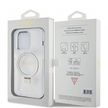 Guess Ring Stand Script Glitter MagSafe iPhone 15 Pro průhlednýPředstavujeme exkluzivní kryt Guess Ring Stand Script Glitter MagSafe (GUHMP15LHRSGSD), který dokonale spojuje ikonický módní styl značky Guess s praktickou funkčností a spolehlivou ochranou pro váš iPhone 15 Pro. Tento průhledný kryt je navržen tak, aby podtrhl originální design vašeho telefonu a zároveň mu dodal nádech luxusu a elegance.