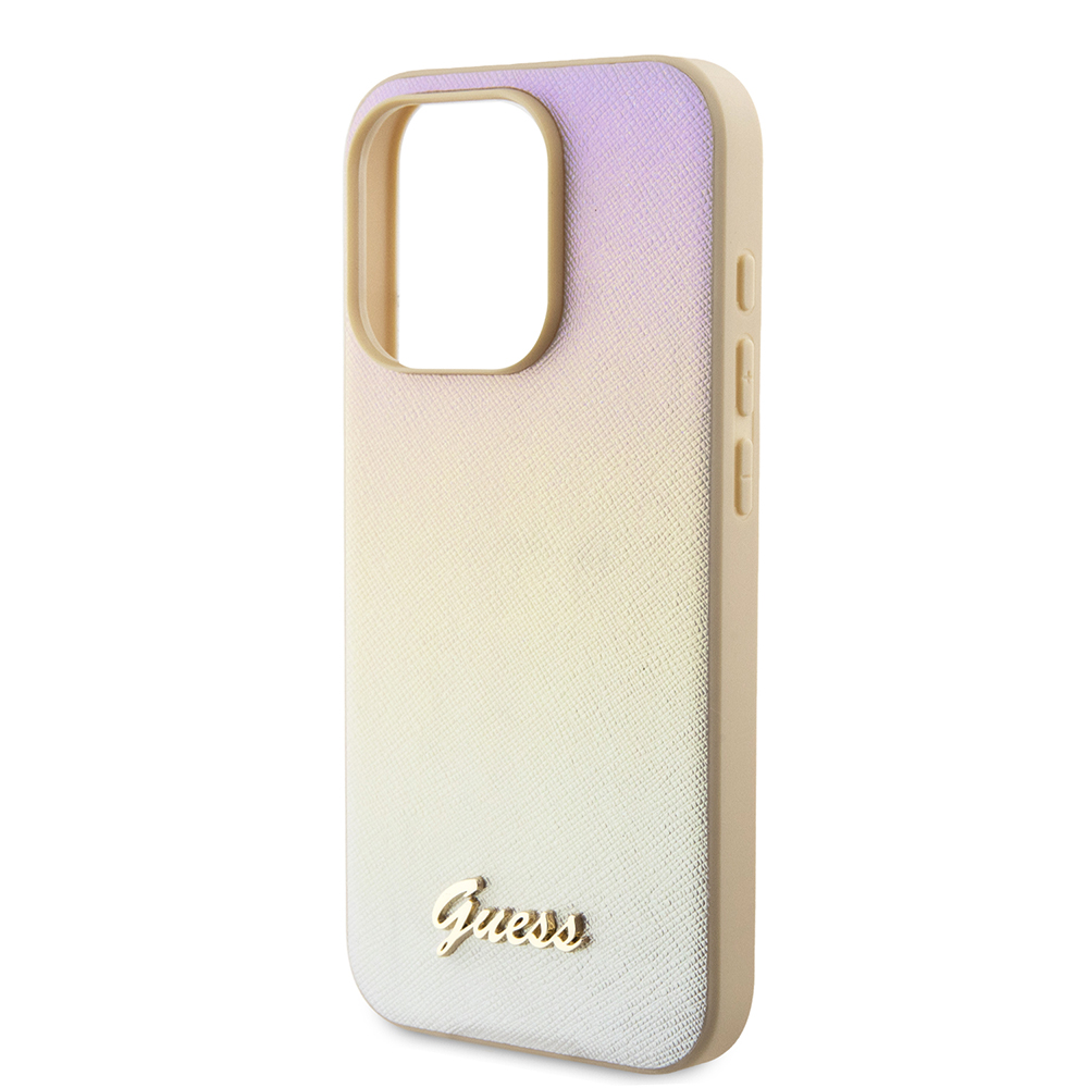 Guess Saffiano Iridescent Script pouzdro iPhone 15 Pro zlatáPředstavujeme exkluzivní pouzdro Guess Saffiano Iridescent Script, které je navrženo tak, aby dokonale doplnilo váš iPhone 15 Pro a podtrhlo váš osobitý styl. Toto pouzdro není jen ochranou, ale především módním doplňkem, který odráží luxus a eleganci značky Guess.