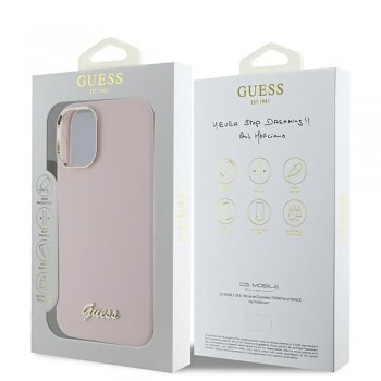 Guess Silicone Script Metal Logo & Frame pouzdro iPhone 16 Plus růžovéPředstavujeme Guess Silicone Script Metal Logo & Frame pouzdro, které dokonale snoubí ikonický módní styl značky Guess s praktickou ochranou pro váš iPhone 16 Plus. Tento elegantní doplněk je navržen tak, aby podtrhl vaši osobnost a dodal vašemu telefonu nádech luxusu.