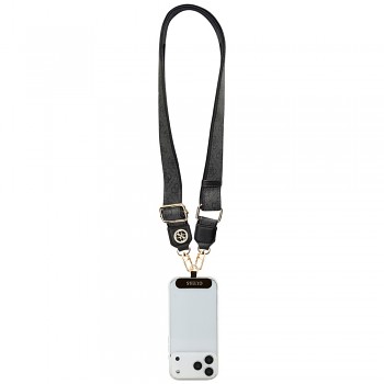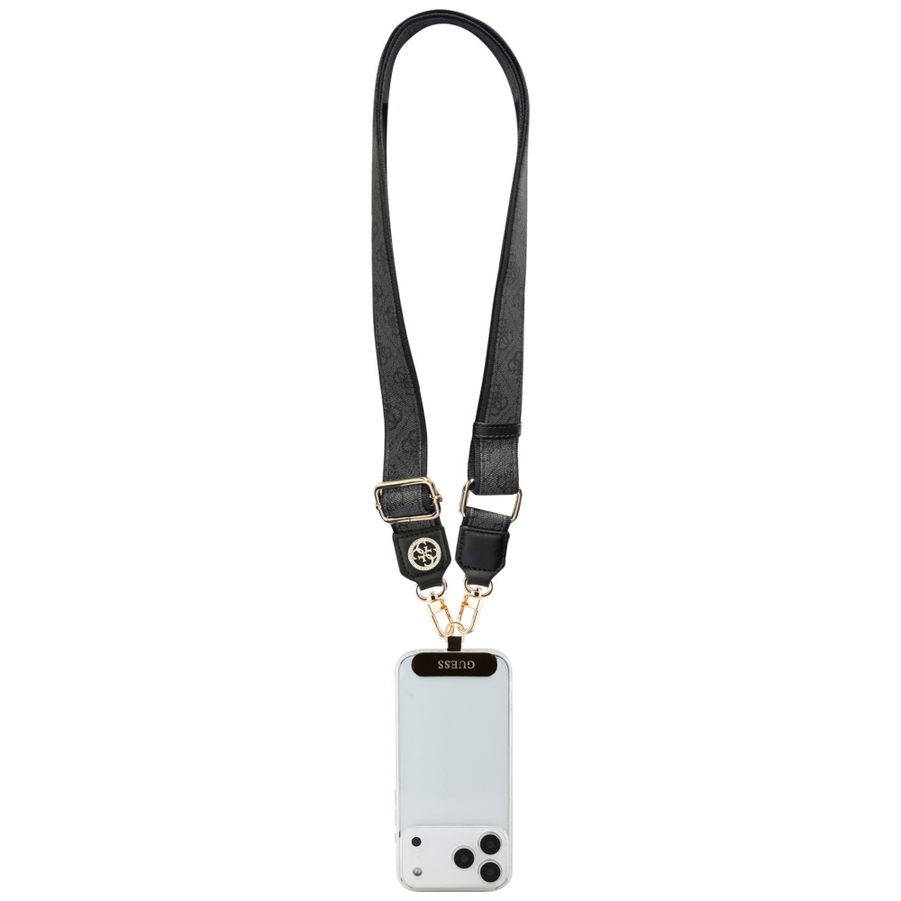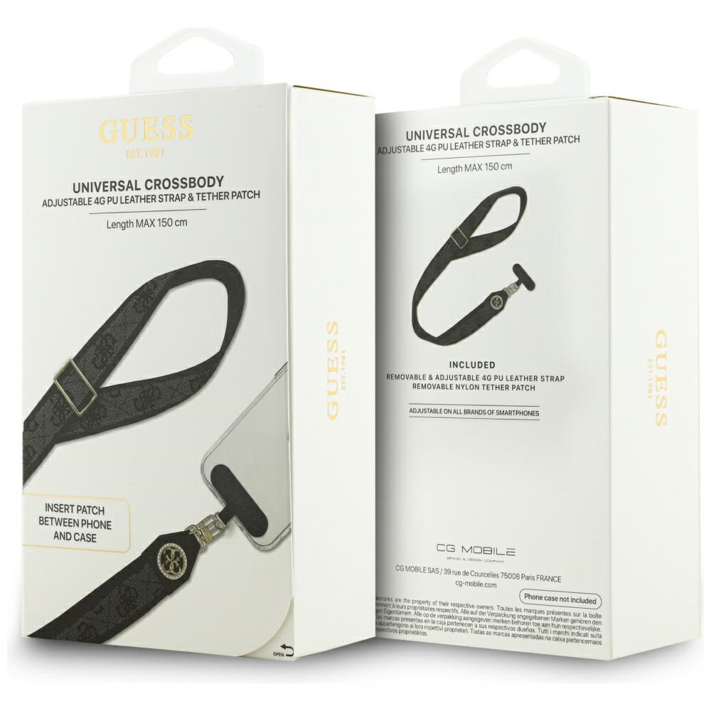Guess Strap Tether Patch 4G Strass Metal Logo univerzální nastavitelný polyuretanová kůže 1.5m černáPředstavujeme vám Guess Strap Tether Patch 4G Strass Metal Logo – univerzální nastavitelný popruh, který promění váš telefon v stylový módní doplněk a zároveň zajistí jeho bezpečné nošení. Tento elegantní popruh je ideální pro každého, kdo hledá kombinaci luxusu, praktičnosti a ikonického designu.