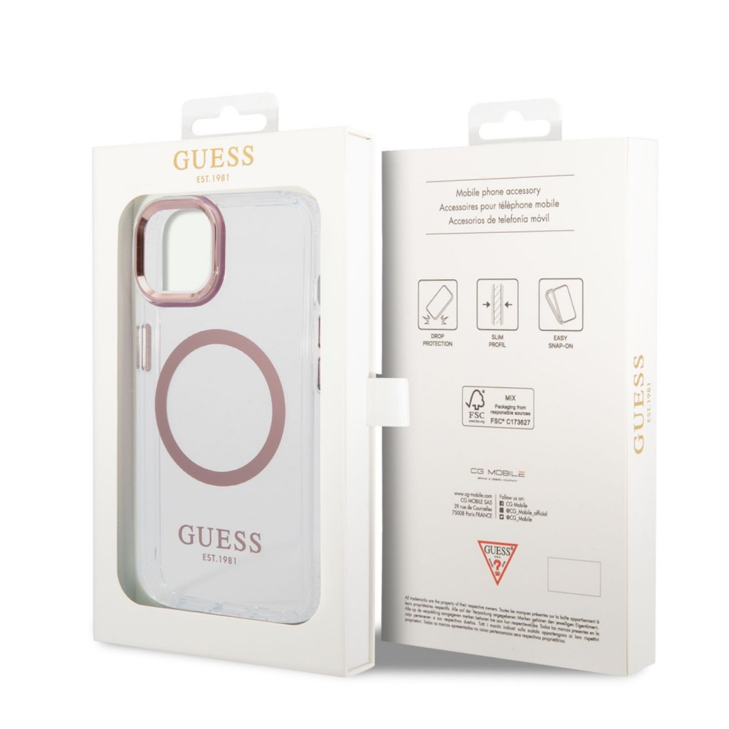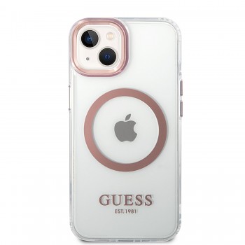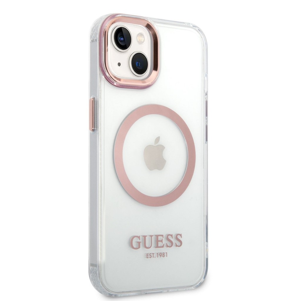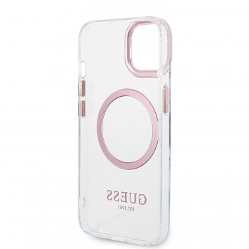 Guess Transparent MagSafe Kompatibilní Zadní Kryt pro iPhone 14 Plus Pink