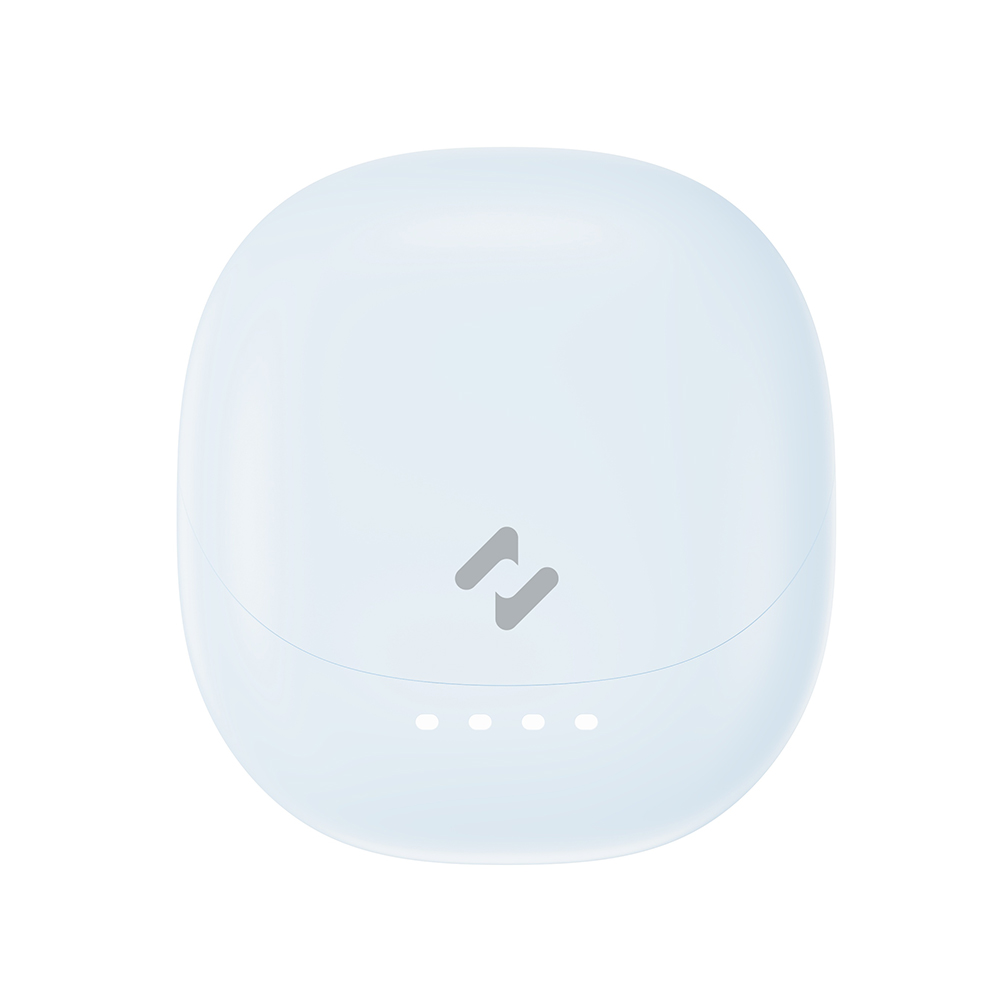 Havit TW931 zaujmou svým minimalistickým a sofistikovaným designem v jemné modré barvě. Nabíjecí pouzdro má kompaktní, zaoblený tvar připomínající oblázek, který se pohodlně vejde do kapsy a je příjemný na dotek díky svému matnému povrchu. Na přední straně pouzdra naleznete čtyři LED indikátory, které vás informují o stavu nabití. Samotná sluchátka jsou typu "in-ear" s krátkou stopkou, což zaručuje pohodlné a bezpečné usazení v uchu i při delším nošení. Stejně jako pouzdro, i sluchátka mají elegantní matný povrch a jsou zdobena decentním logem Havit. Nabíjení pouzdra probíhá prostřednictvím moderního USB-C portu, umístěného na spodní straně.