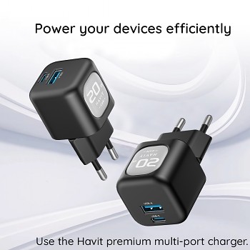 Havit Wall Charger UC220 EU USB Type-C GaN 20W černá šedáPrávě probíhá akce, kdy je dopravné od dvou kusů zboží v objednávce zdarma.