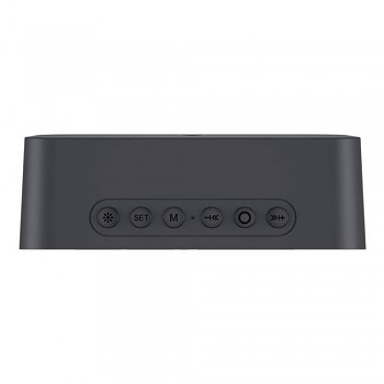Reproduktor Havit M3 se pyšní moderním a minimalistickým designem. Jeho obdélníkový tvar s jemně zaoblenými hranami působí elegantně a snadno zapadne do jakéhokoli interiéru. Přední stranu dominuje velký zrcadlový LED displej, který zobrazuje čas a aktuální režim (BT, FM, TF, AUX) s jasnými bílými číslicemi a ikonami. Díky zrcadlovému povrchu displeje se stává stylovým doplňkem. Na horní straně reproduktoru naleznete intuitivní ovládací tlačítka s ikonami pro nastavení jasu, budíku, režimu, přeskakování skladeb a ovládání hlasitosti. Zadní strana a boky jsou opatřeny jemnou texturou, která dodává zařízení prémiový vzhled a zároveň zajišťuje stabilní umístění.