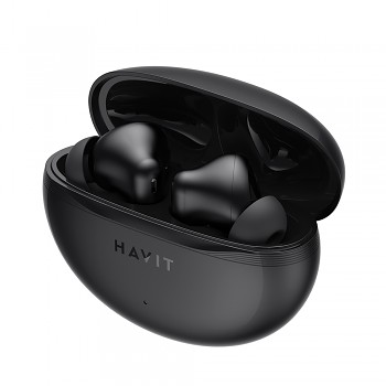 Sluchátka Havit TW986 se pyšní minimalistickým a sofistikovaným designem. Jejich kompaktní nabíjecí pouzdro v matně černé barvě s decentním logem Havit je nejen praktické pro přenášení, ale také skvěle doplňuje celkový vzhled. Samotná sluchátka jsou ergonomicky tvarovaná s měkkými silikonovými nástavci, které zajišťují pohodlné a bezpečné usazení v uchu i při dlouhodobém poslechu. Jejich nenápadný profil a nízká hmotnost zaručují, že je v uších téměř neucítíte.