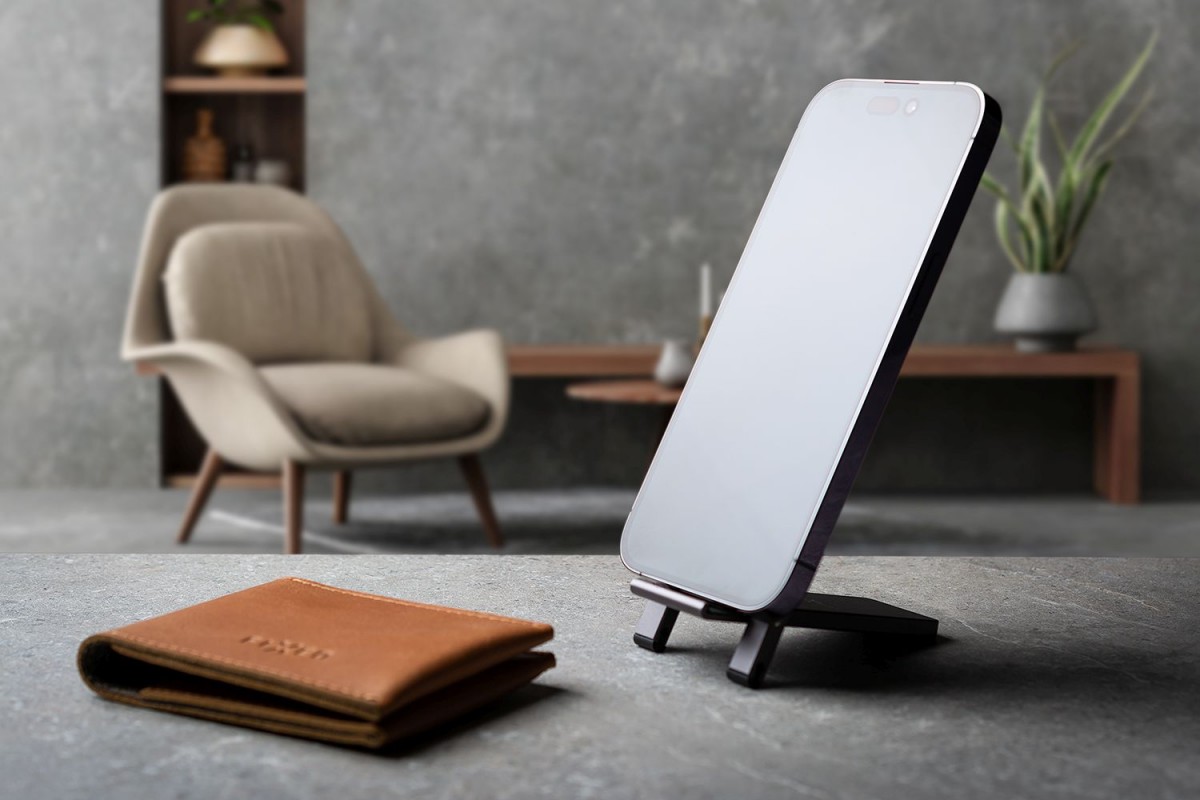 Hliníkový stojánek FIXED Frame Pocket na stůl pro mobilní telefony, space gray