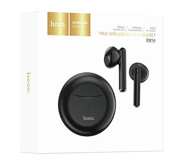 HOCO EW14 TWS bezdrátová stereo sluchátka s podporou Bluetooth v5.3 a výdrží až 4 hodiny na jedno nabití.