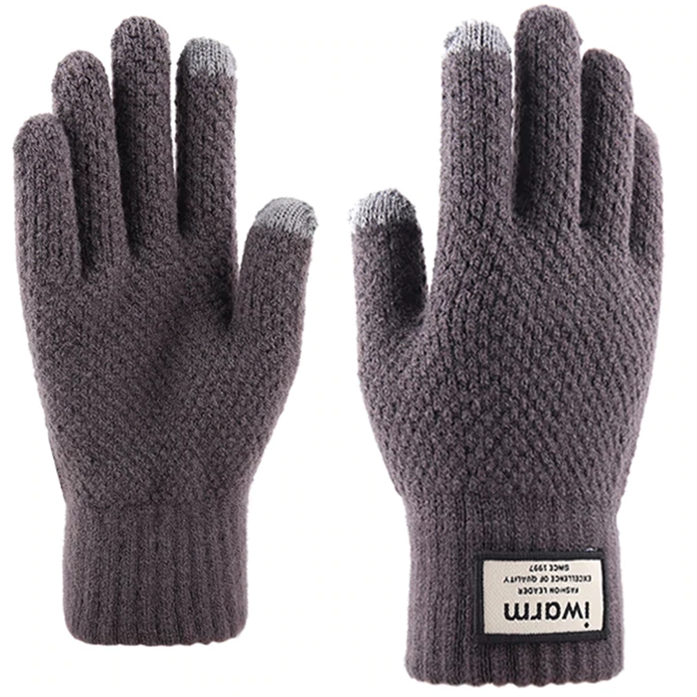 Rukavice se pyšní klasickým pleteným designem, který je nadčasový a snadno kombinovatelný s jakýmkoli zimním outfitem. Jejich tmavě šedá barva dodává sofistikovaný vzhled. Klíčovým prvkem jsou kontrastní, světle šedé špičky palce, ukazováčku a prostředníčku, které zajišťují precizní a spolehlivé ovládání vašeho chytrého telefonu či tabletu bez nutnosti sundávání rukavic. Na manžetě jedné z rukavic je decentně umístěn bílý štítek s logem iWarm, podtrhující kvalitu a styl značky.