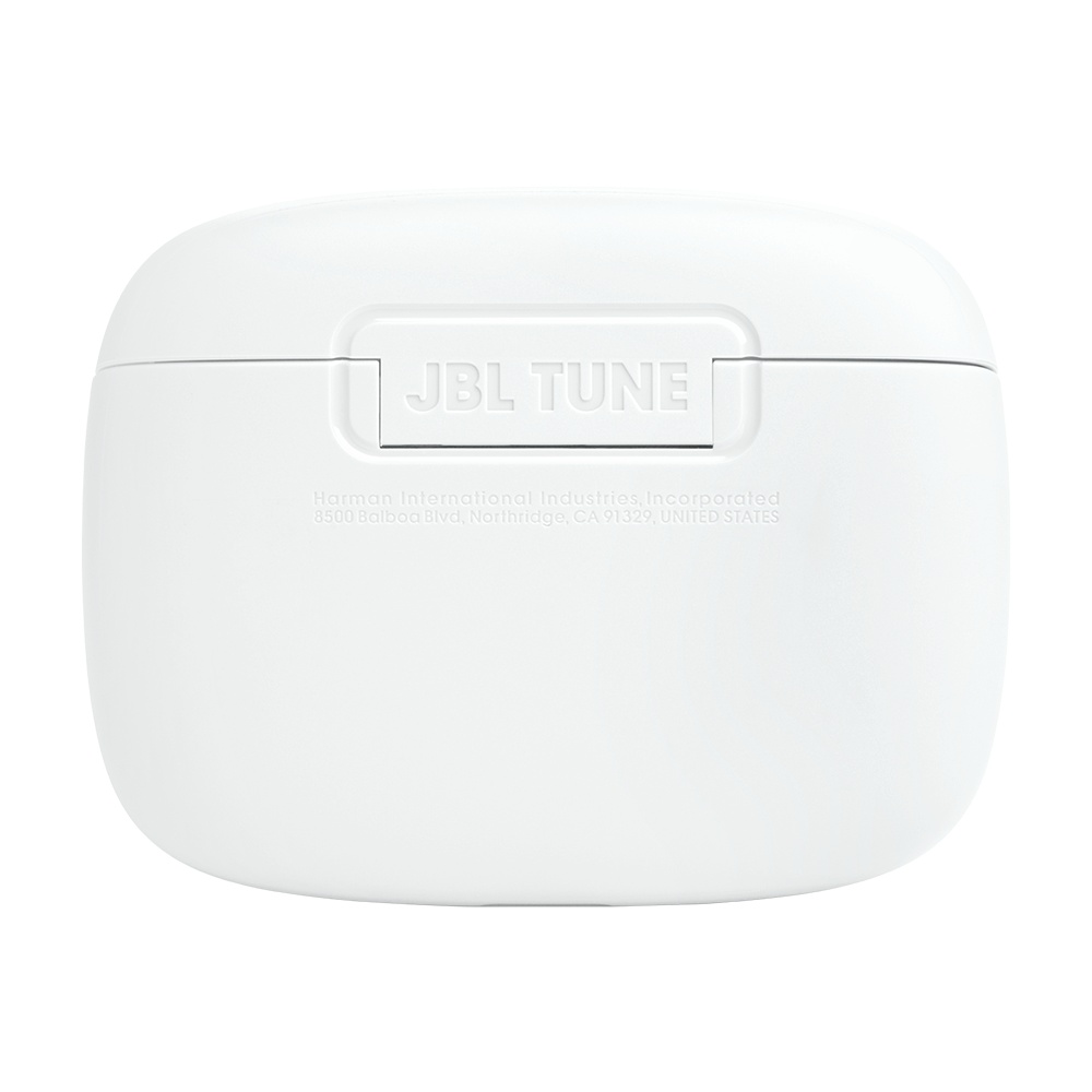 JBL Tune Buds se pyšní minimalistickým a moderním designem v čistě bílé barvě, která podtrhuje jejich eleganci. Kompaktní nabíjecí pouzdro má zaoblené tvary a hladký povrch, s decentně vyraženým logem JBL na přední straně. Samotná sluchátka jsou navržena jako in-ear špunty, které perfektně padnou do ucha a zajišťují pohodlí i při dlouhodobém nošení. Logo JBL je elegantně umístěno i na vnější straně každého sluchátka. Celkový vzhled je nenápadný, ale stylový, ideální pro každodenní použití.
