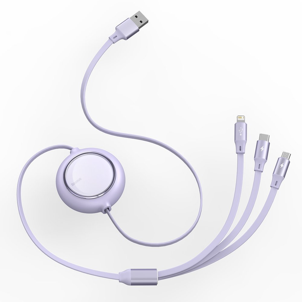 Kabel Baseus Bright Mirror 3 v 1 - USB na Micro USB, Lightning, Typ C - 3,5A 1,2 metru (CAMLT-MJ05) fialový