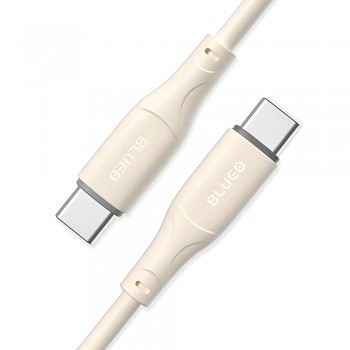Kabel Blueo Ape Legend se pyšní minimalistickým a elegantním designem v příjemném světle šedém odstínu, který se snadno sladí s jakýmkoli zařízením. Jeho povrch je hladký a příjemný na dotek, což zajišťuje snadnou manipulaci a zabraňuje zamotávání. Konektory Type-C jsou precizně zpracované a opatřené zesílenou ochranou proti ohybu v místech největšího namáhání, což výrazně prodlužuje životnost kabelu a chrání jej před poškozením při každodenním používání. Robustní konstrukce zaručuje vysokou odolnost a spolehlivý přenos dat i energie.