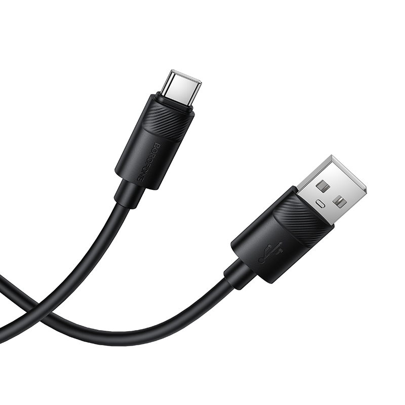 Kabel Borofone BX123 Leya se vyznačuje svým jednolitým a minimalistickým designem v elegantní černé barvě. Celý povrch kabelu, včetně samotných konektorů, je potažen vysoce kvalitním a na dotek příjemným silikonem. Tento materiál nejenže zajišťuje mimořádnou ohebnost a odolnost proti zamotání a poškození, ale také dodává produktu prémiový vzhled. Koncovky kabelu jsou robustní a ergonomicky tvarované pro snadnou a pohodlnou manipulaci při připojování a odpojování.