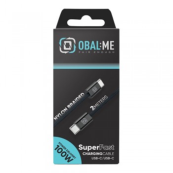 Kabel OBAL:ME Super Fast USB-C/USB-C pletený 100W 2m černýTento model zaujme hrubou a temnou tkanou textilií po celé délce kabelu, která mu dodává vysoce funkční a drsný vizuál stvořený pro náročné zacházení.