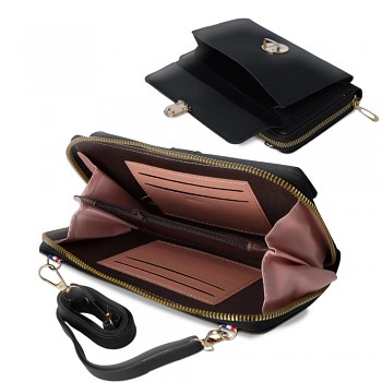 Uvnitř peněženky naleznete promyšlené uspořádání, které vám umožní mít vše perfektně zorganizované. K dispozici jsou přihrádky na karty, kam snadno uložíte své platební karty, občanský průkaz nebo vizitky. Dále zde najdete prostornou kapsu na bankovky a doklady a také kapsu na zip pro mince nebo jiné drobnosti. Speciální hlavní přihrádka je určena pro váš smartphone, který je tak chráněn a vždy snadno dostupný. Peněženka je vybavena odnímatelným popruhem, díky kterému ji můžete nosit přes rameno jako malou kabelku, nebo ji jednoduše odepnout a nosit jako elegantní peněženku v ruce.