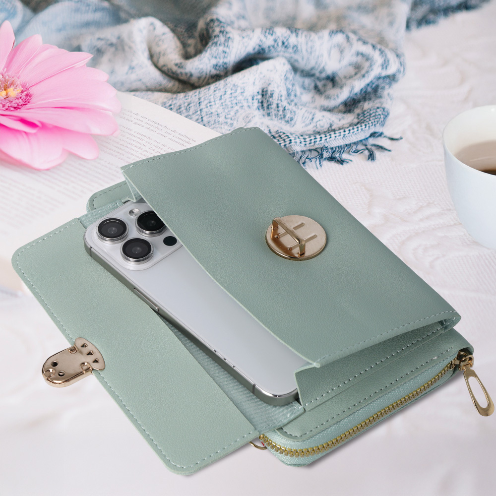 Kabelka na mobil GCW06 mintObjevte dokonalou kombinaci elegance a praktičnosti s naší **stylovou kabelkou na telefon GCW06** v osvěžující mátové barvě. Tento módní doplněk je navržen tak, aby udržel váš smartphone a nezbytnosti v bezpečí a vždy po ruce, ať už se vydáte kamkoli. Je ideální pro ty, kteří hledají **kompaktní řešení** pro své každodenní potřeby s nádechem sofistikovanosti.