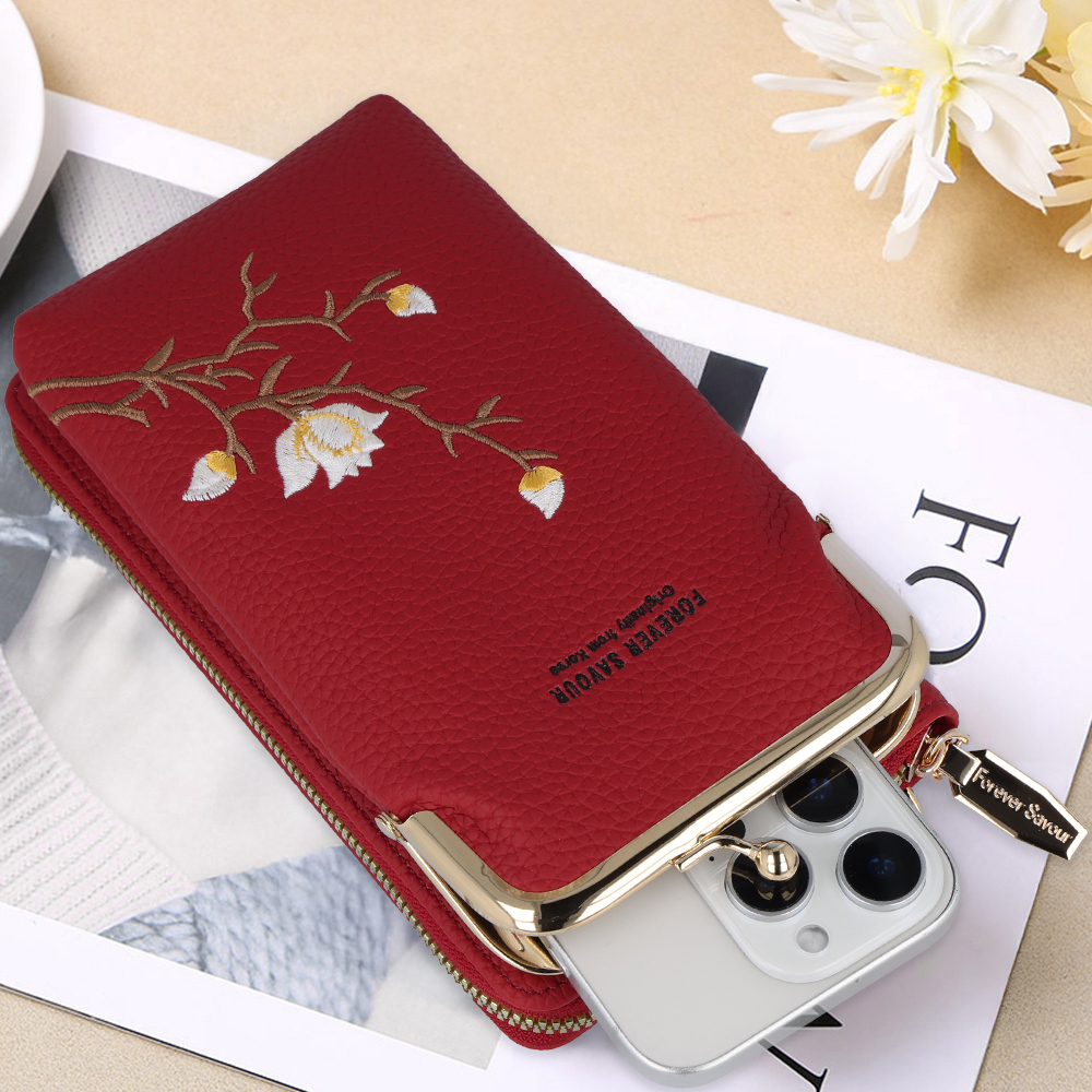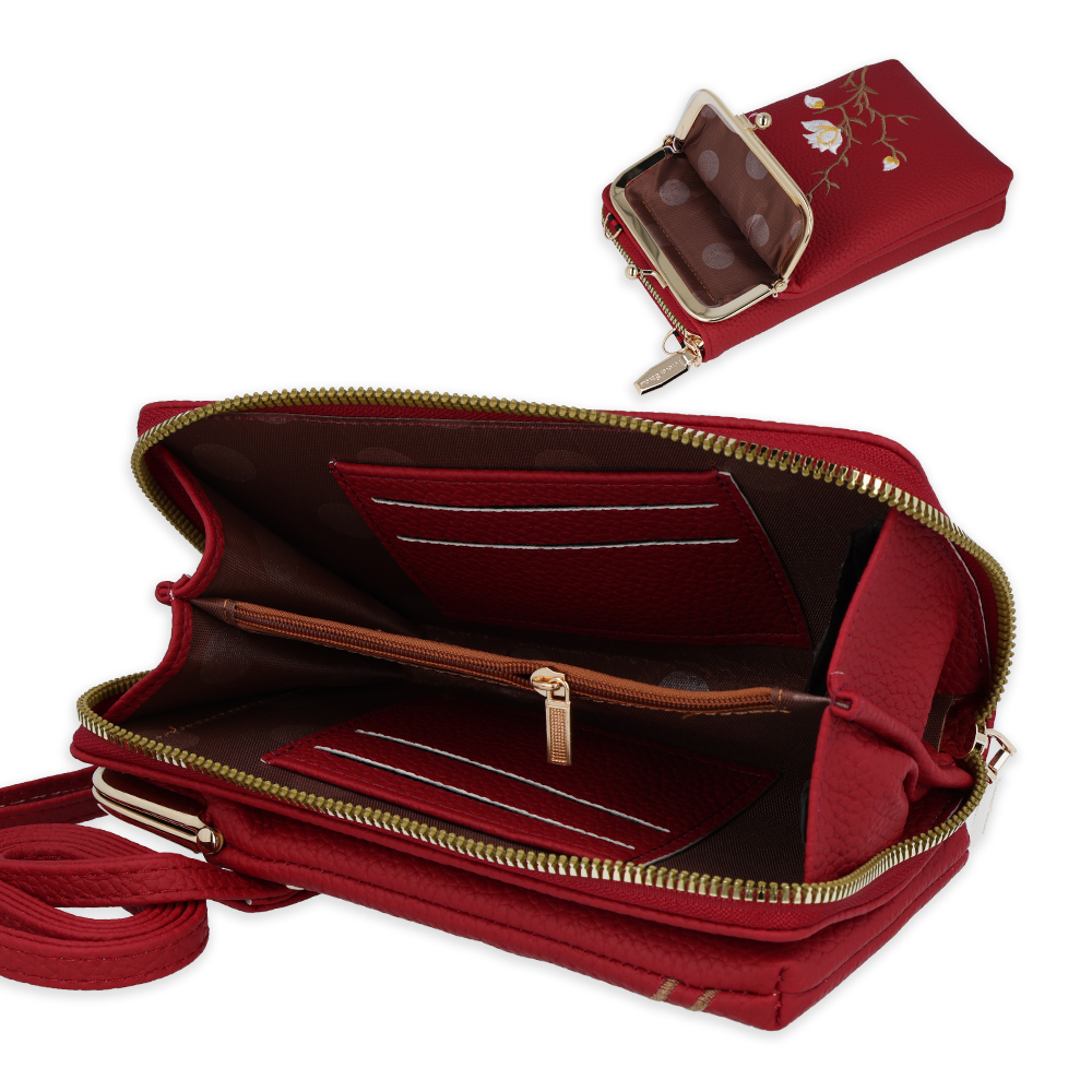 Pouzdro GCW17 zaujme na první pohled svým sofistikovaným designem. Dominantou je nádherná květinová výšivka v jemných odstínech bílé a žluté, která dodává pouzdru jedinečný a ženský šarm. Kovové detaily ve zlaté barvě, včetně elegantního klipu pro hlavní přihrádku a zipu, podtrhují jeho luxusní vzhled. Kromě hlavní kapsy na telefon nabízí pouzdro také praktickou přihrádku na zip, ideální pro mince nebo drobnosti, a několik slotů na karty, takže může sloužit i jako malá peněženka. Součástí je také nastavitelný ramenní popruh, díky kterému můžete pouzdro nosit pohodlně přes rameno nebo jako crossbody kabelku.