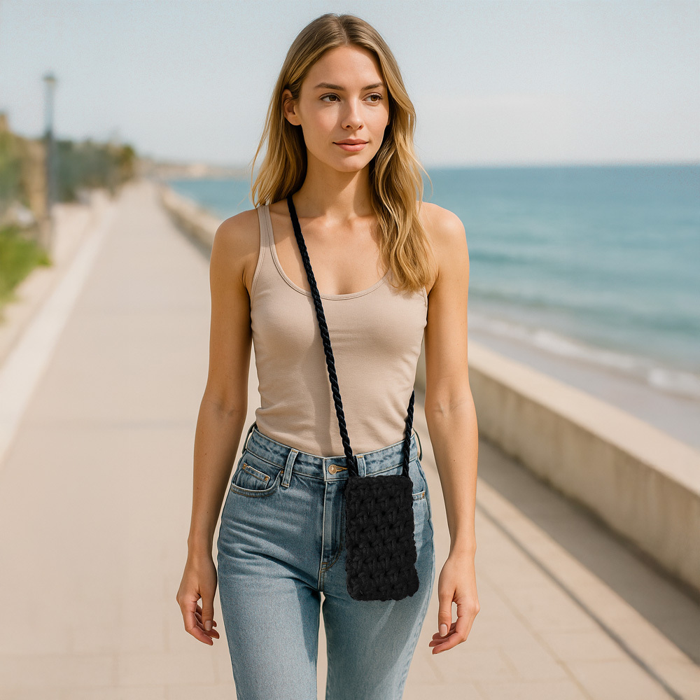 Oživte svůj letní vzhled s touto černou kabelkou na mobil, inspirovanou ručním pletením a trendy pomalé módy!