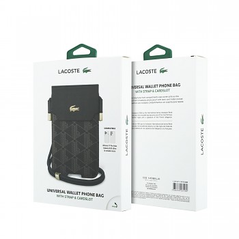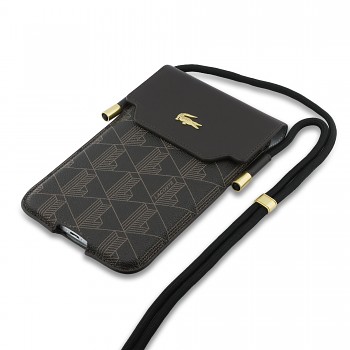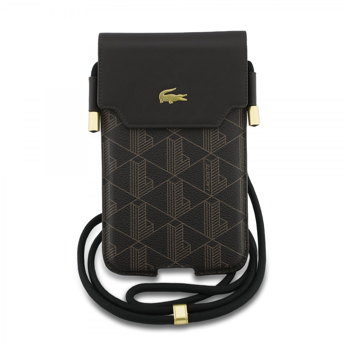 Kabelka na telefon Lacoste PVC Blend Monogram Metal Logo XL hnědáKompaktní hnědá kabelka s Blend monogramem a ikonickým kovovým logem krokodýla na přední straně.